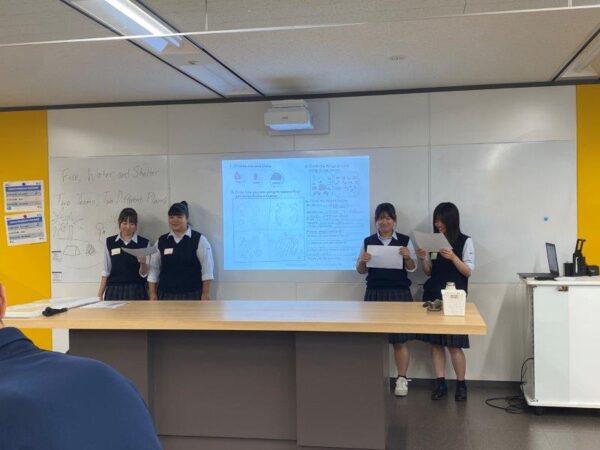 9月9日(火)、TGG(東京グローバルゲートウェイ)にて、希望者を対象に英語研修を実施しました。今回の研修もホテルやキャンパスなどのシチュエーションを想定し、よりリアルな英語を体験することができました。また、「サバイバル術を身につける」というテーマで、緊急時に必要な技術や知恵、身近なものが本来の用途とは異なる形で役立つということなどを、さまざまなアクティビティを通して学びました。今年度は昨年度の3倍となる38名が参加し、過去最多の人数となりました。1日限りの体験ではありましたが、生徒たちは充実した時間を過ごし、非常に満足した様子でした。