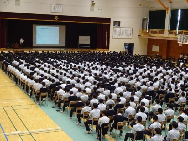 体育館に全校生徒が集合しました
