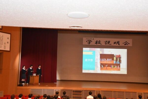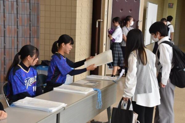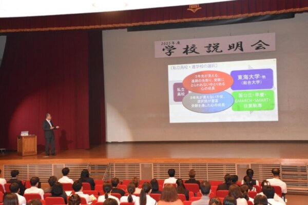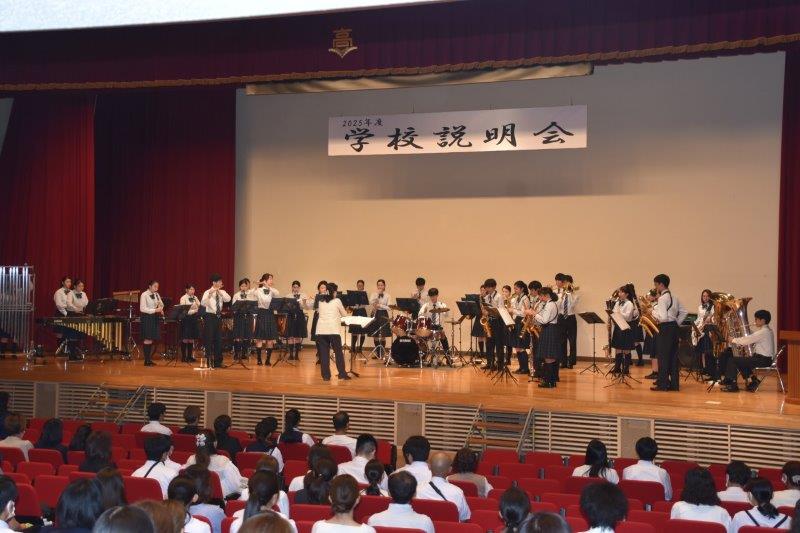 10月4日(土)、2026年度入試に向けた第1回学校説明会を開催し、多くの中学生・保護者の皆様にご来校いただきました。開会前に校内案内を行い、特進クラスの授業や校内の施設などをご覧いただきました。全体会は、吹奏楽部による歓迎演奏に始まり校長挨拶・生徒による学校説明・福島副校長による入試説明と続きました。全体会終了後はご希望の方を対象に個別相談も行いました。ご参加いただいた皆様ありがとうございました。皆さんの進路選択の一助となれば幸いです。