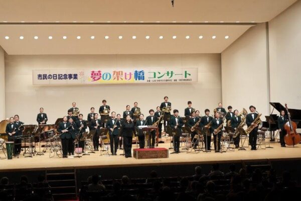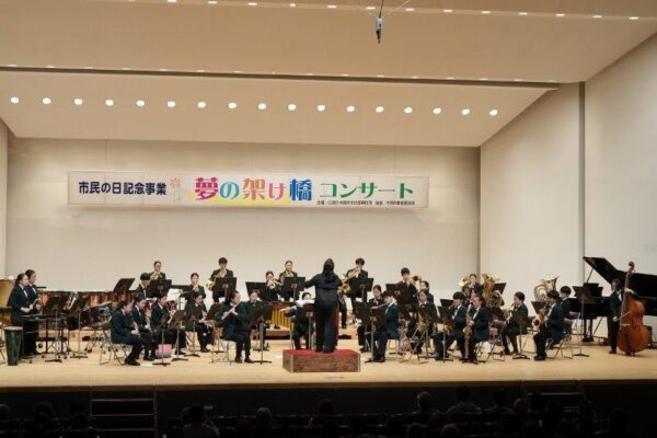 2025年11月2日(日)、市原市市民会館大ホールにて、「夢の架け橋コンサート」が開催され、市内の中学校5校と本校吹奏楽部が演奏を披露しました。ホールには事前にチケットを手に入れた多くの方々が来場され、各校の素晴らしい演奏に拍手を送りました。市原望洋高校吹奏楽部は最後に登場、今年 第25回東日本学校吹奏楽大会で金賞を受賞した歌劇「子供と魔法」、アナと雪の女王・メドレーを披露しました。