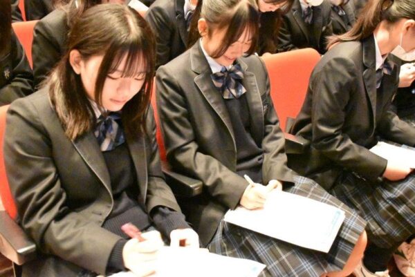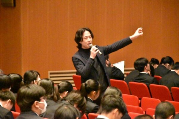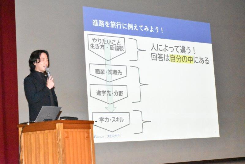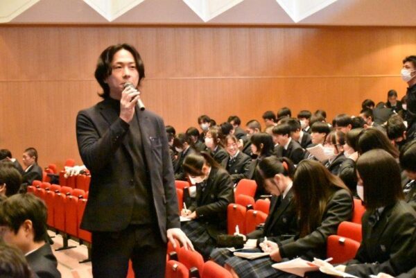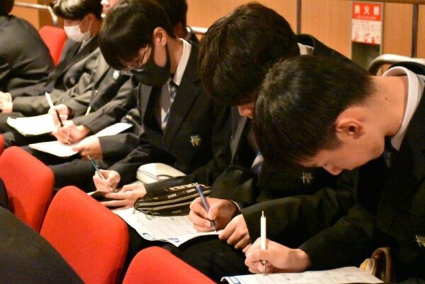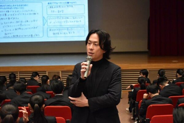 11月6日(木)、(株)sunriseの創業者で学生~社会人向けのキャリア支援を行っている森 隆剛 様を講師にお迎えし、1年生を対象とした進路学習を行いました。関西弁の軽妙な話に生徒たちは引き込まれ、真剣に聞くところは聞き、ワークシートにもしっかり記入していました。高校での文理選択や卒業後の進路をどのように考えるかなど、わかりやすい説明にみな納得顔でした。森様、お忙しい中を本校生徒たちのためにありがとうございました。