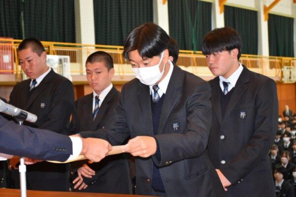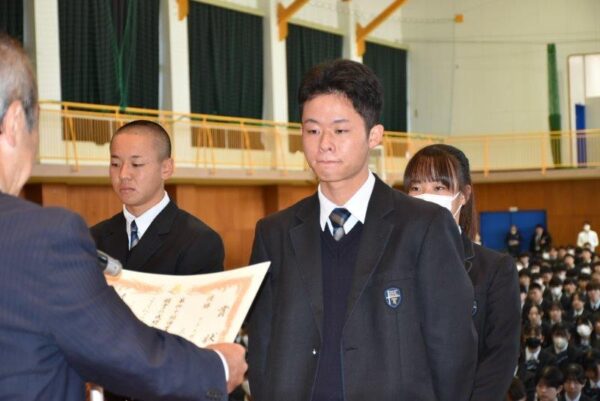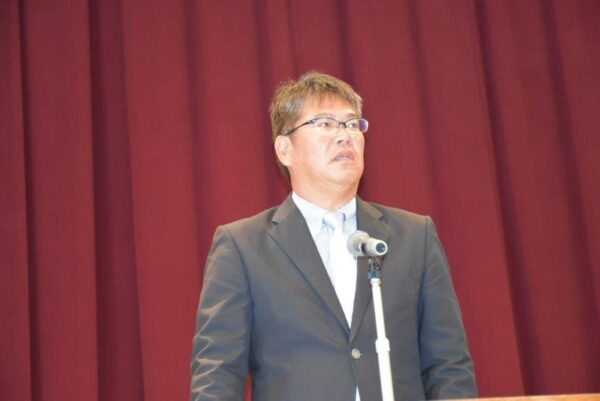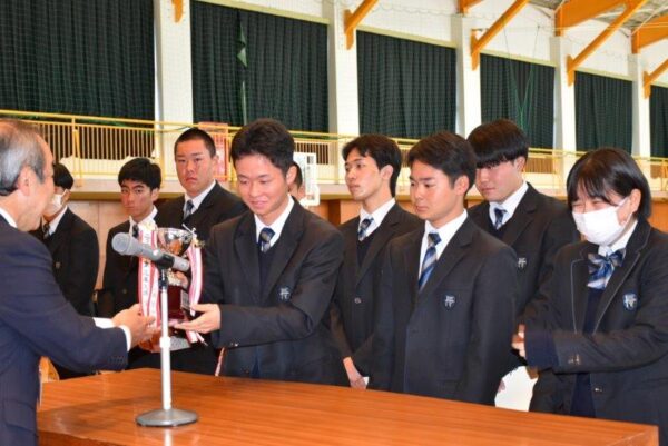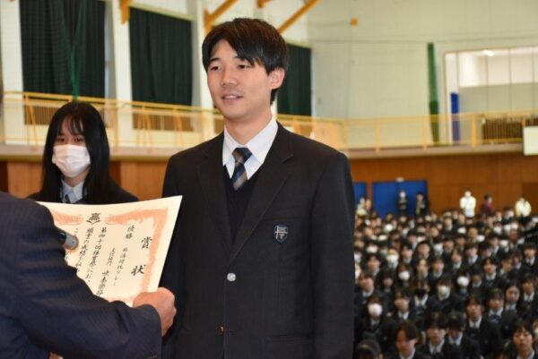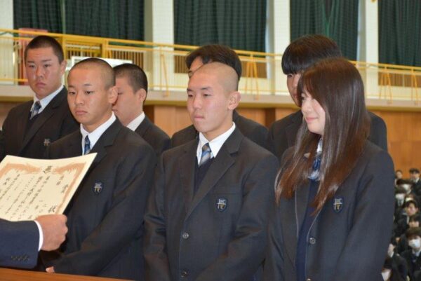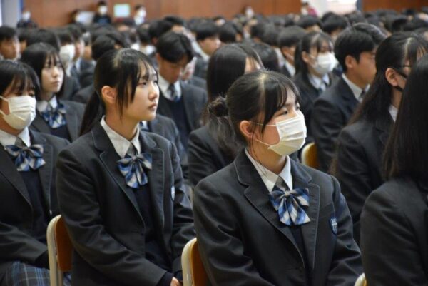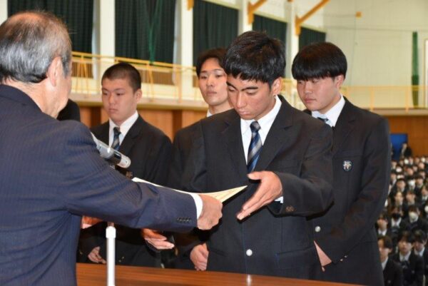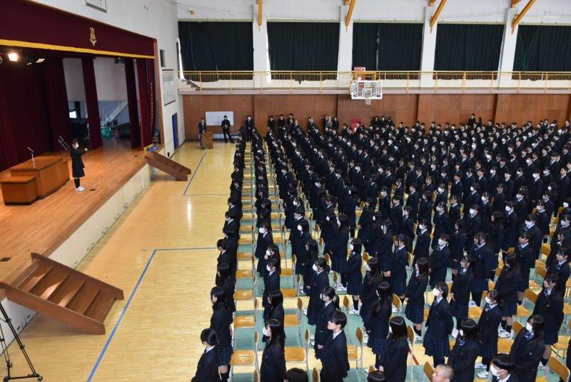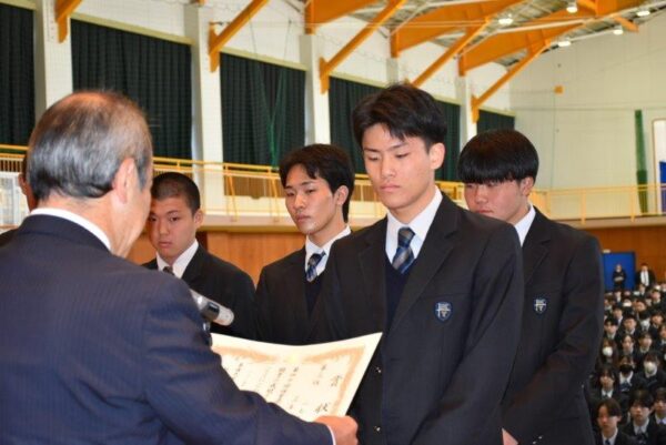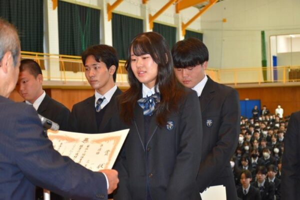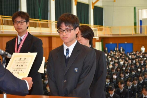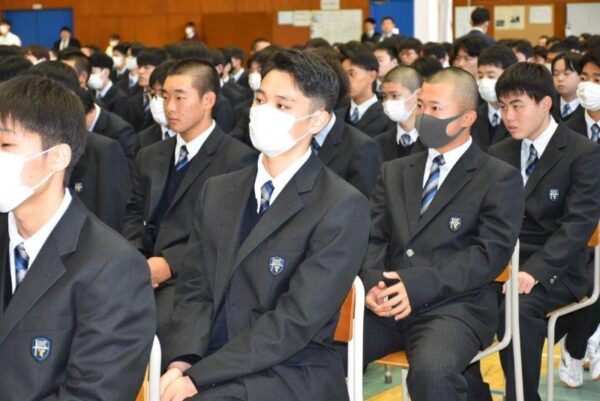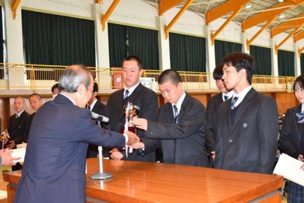 11月10日(月)、11月の全校集会を実施しました。今回は、普段生徒と接する機会の少ない事務室の鳴島事務長からコミュニケーションの大切さについての講話と、生徒指導主任から身だしなみやマナー・モラルについての講話がありました。続いて、先月の体育祭表彰と射撃部の関東大会予選会の表彰伝達が行われ、関東大会出場を決めた射撃部に対する壮行会を行いました。そして、本日から2週間、本校で実習を行う教育実習生の紹介と校歌斉唱で締めくくりました。