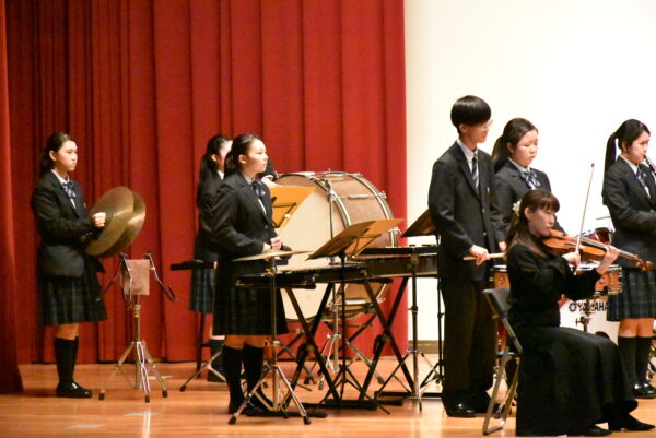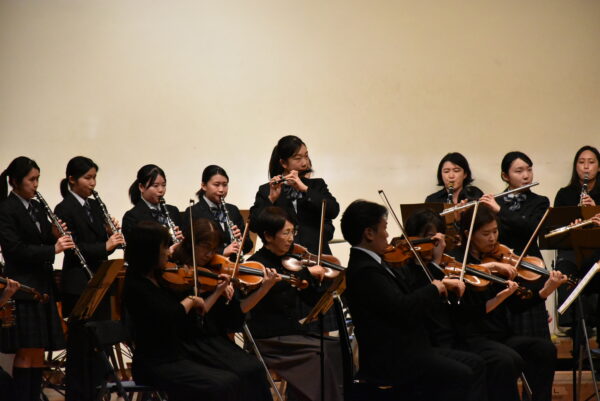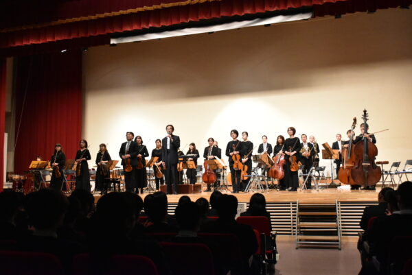 11月10日(月)、5・6時間目の時間を使って1・2年生を対象に、本校松前記念講堂で芸術鑑賞会を行いました。今年も千葉交響楽団に起こしいただきました。前半は、クラシックの名曲やアンサンブル演奏による楽器紹介など。休憩をはさんで後半のはじめは本校吹奏楽部が「星条旗よ永遠なれ」を合同で演奏させていただき、映画音楽などなじみのある曲が続いて最後はラデツキー行進曲、全員が手拍子で盛り上がりました。千葉交響楽団の皆様、スタッフの皆様、素敵な演奏をありがとうございました。