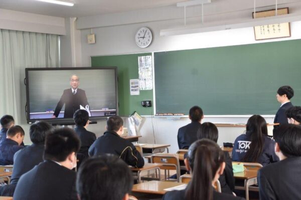 2月2日(月)、2月の全校集会を各教室の電子黒板への配信によるonline形式で実施しました。今回は、副校長の福島先生からの講話と表彰伝達です。福島先生からは、牛乳からチーズやバターなど様々なものができており、仏教では「乳」→「酪」→「生酥」→「熟酥」→「醍醐」と変化していくが、これを人生に例えて現在の自分がどの段階かを考えてみたらどうか、という話がありました。表彰伝達は射撃部の千葉県新人戦、ビームピストル男子5位、ビームライフル男子5位、ビームライフル女子7位と8位、エアーライフル男子優勝と準優勝、エアーライフル女子準優勝と3位でした。ほんの少しだけ寒さが緩んできたように感じられます。が、まだまだ油断せず、体調管理に努めてください。