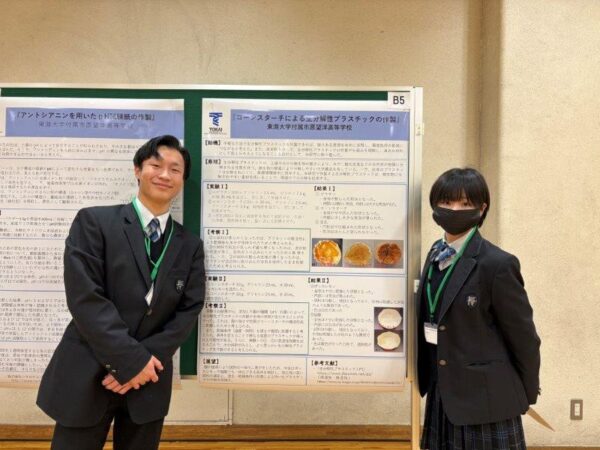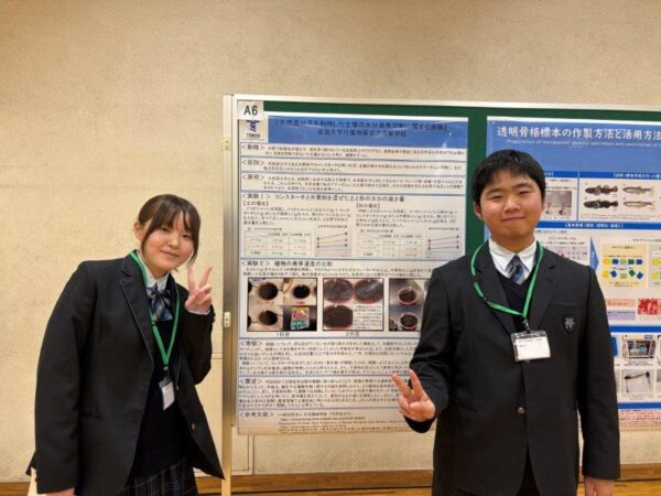 2026年2月14日(土)、付属・系列中等部・高等学校による科学研究成果発表会が開催され、多くの生徒が研究成果を発表しました。午前はポスターセッション、午後は口頭発表が行われ、活発な意見交換が見られました。本校からは、科学部および特進コースの生徒が以下の発表を行いました。参加した生徒たちは、日頃の研究を発信するとともに、他校の取り組みから新たな学びを得る貴重な機会となりました。今後も科学探究活動の充実に努めてまいります。