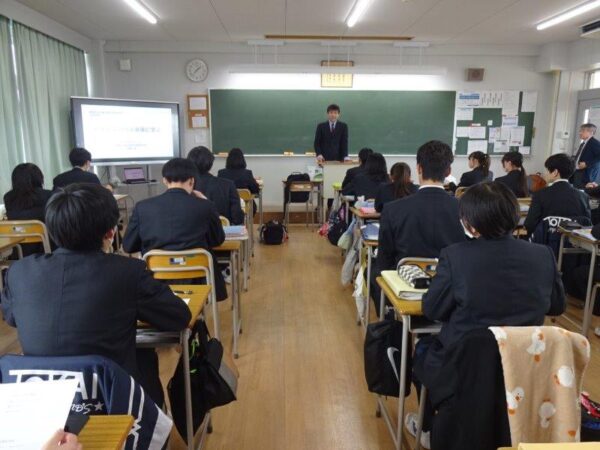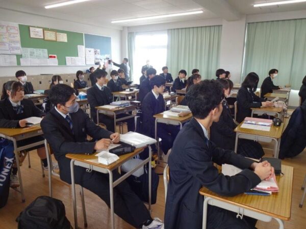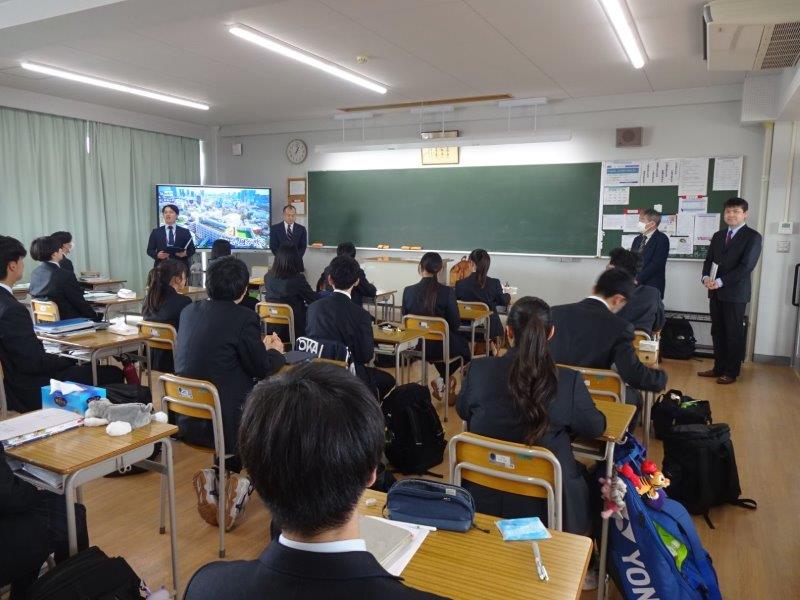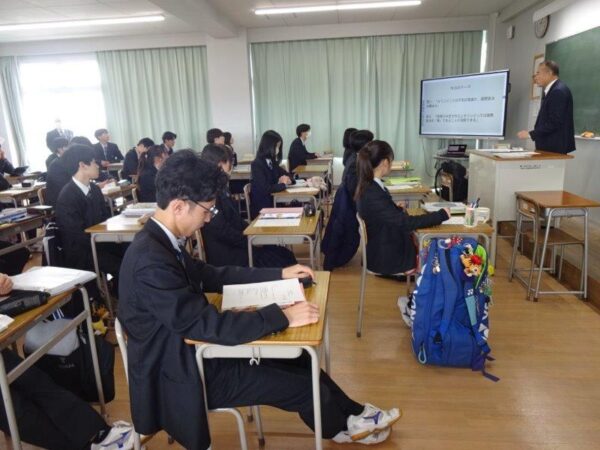 2月24日(火)、2年生の特進クラスを対象に、東海大学政治経済学部より前田成東 先生・藤巻裕之 先生・高橋塁 先生を講師にお迎えして高大連携特別授業を実施しました。短い時間ではありましたが、先生方の専門性を生かした模擬授業と学科の説明を聞き、生徒たちは政治経済学部での学びを感じることができました。授業後には、本校地歴公民科の教員と高大連携について活発な意見交換を行いました。3名の先生方、本日はありがとうございました。